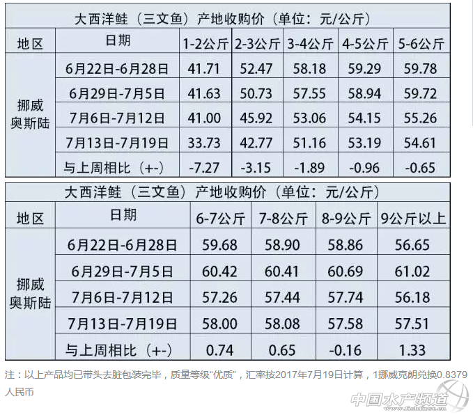 大西洋鮭產(chǎn)地收購平均價